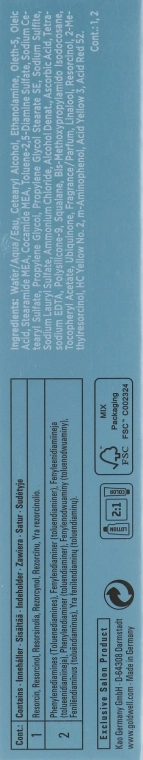 Water / Aqua / Eau, Cetearyl Alcohol, Ethanolamine, Oleth-5, Oleic Acid, Stearamide MEA, Cocamide MEA, Sodium Cetearyl Sulfate, Toluene-2.5-Diamine Sulfate, Propylene Glycol, Propylene Glycol Stearate SE, Sodium Sulfite, Sodium Lauryl Sulfate, Ammonium Chloride, Alcohol Denat., Ascorbic Acid, Tetrasodium EDTA, Polysilicone-9, Silica, Squalane, Bis-Methoxypropylamido Isodocosane, Tocopheryl Acetate, Ublquinone, Fragrance / Parfum, Linalool, 2-Methylresorcinol, Resorcinol, m-Aminophenol, 2 -Amino-3-Hydroxypyridine
