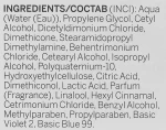Aqua (water), Cetylacohol, Dicetyldimonium Chloride, Dimethilamine, Behentrimonium Chloride, Cetrimonium Chloride, Hydroxyethylellulose, Polyqaternium-10, Dimethiconol, Isopropyl Alcohol, Basic Blue 99, Basic Brown 16, Basic Yellow 57, Parfum, Linalool, Citric Acid.