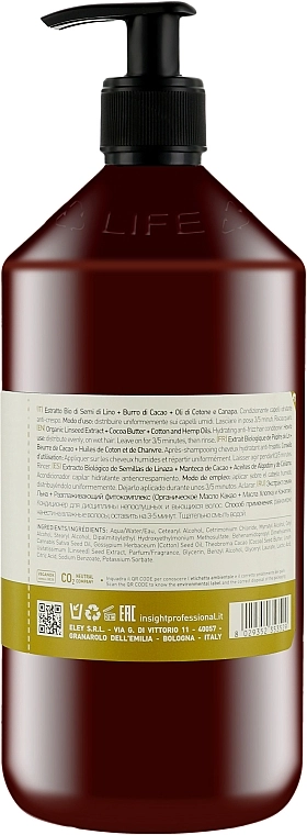 Биологический экстракт льна в составе кондиционера бережно восстанавливает структуру каждого локона, обеспечивая интенсивное увлажнение не только волос, но и кожи головы. А масло какао и хлопка способствуют питанию, укреплению, смягчению прядей, с каждым разом улучшая их внешний вид. Конопляное масло призвано защитить волосы от негативного влияния внешних факторов и сделать их более мягкими.