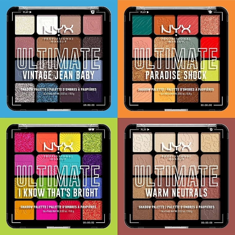 Всеми любимые палитры Ultimate теперь в 4 новых и обновленных версиях! Каждый из них содержит 16 уникально составленных оттенков, позволяющих создать любой образ. От ярких ярких оттенков — я знаю, что это яркие цвета, от винтажных джинсовых синих — Vintage Jean Baby до электрических тропиков — Paradise Shock и идеальных бежевых оттенков — Warm Neutrals. Новые палитры, новые возможности! В 3 раза более сильный пигмент одним движением и 100% веганская формула! Упаковка в 2 раза легче и на 30 % состоит из переработанного пластика. Создайте идеальный образ с нашими изысканными, улучшенными и веганскими оттенками палитр Ultimate.